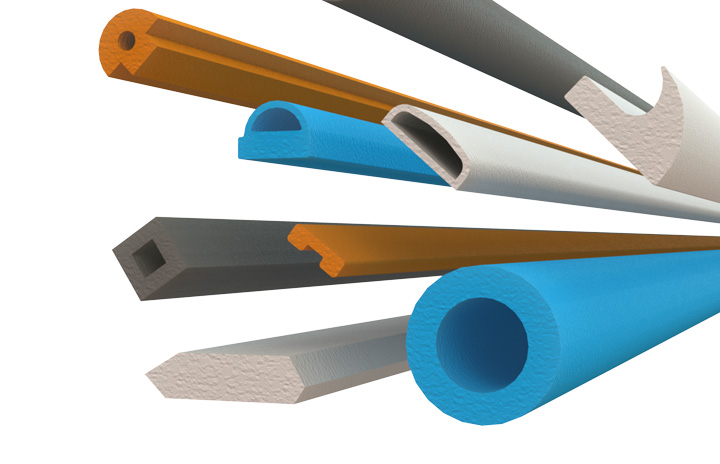 Manufactured in various rubber materials from natural rubber to EPDM, extrusions are parts pushed through a die of the required cross-section under pressure.
